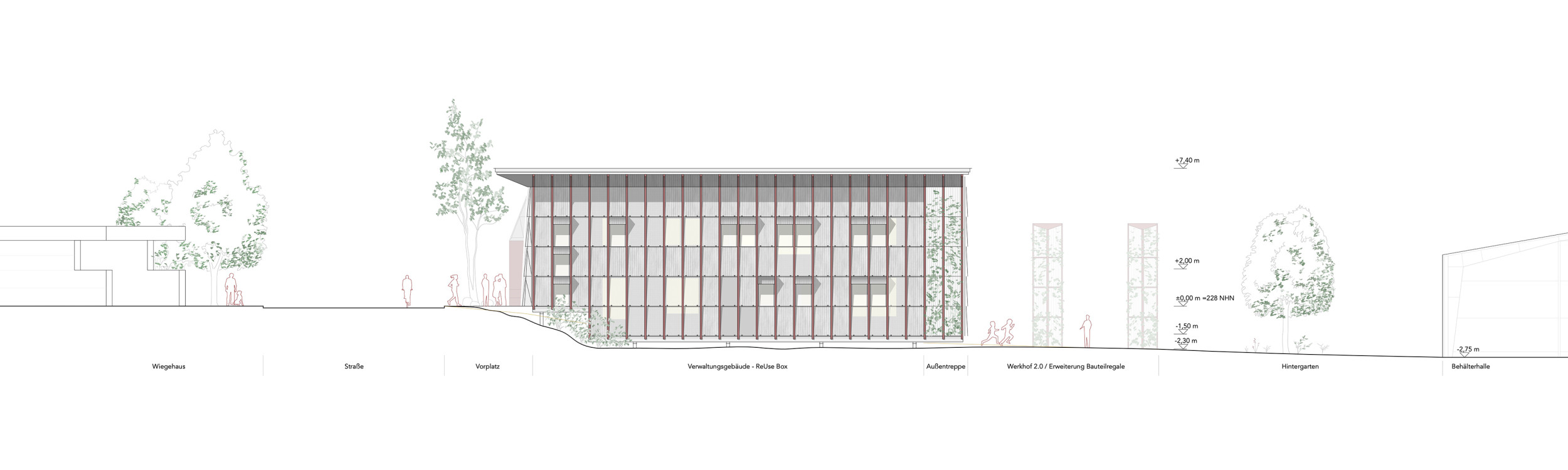 The ReUseBox acts as a driver for sustainable building. It demonstrates how resource-efficient architecture can function and makes material cycles clearly comprehensible.