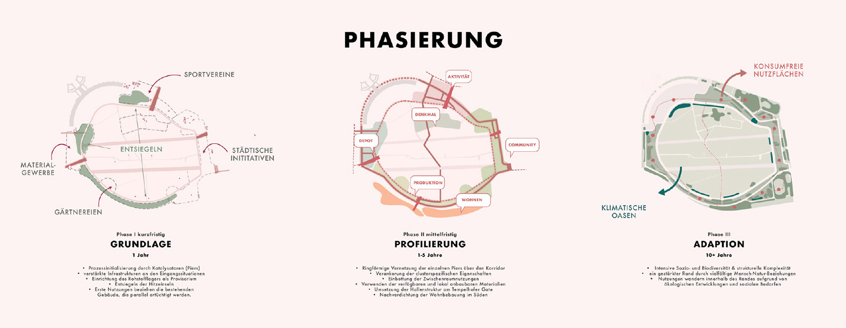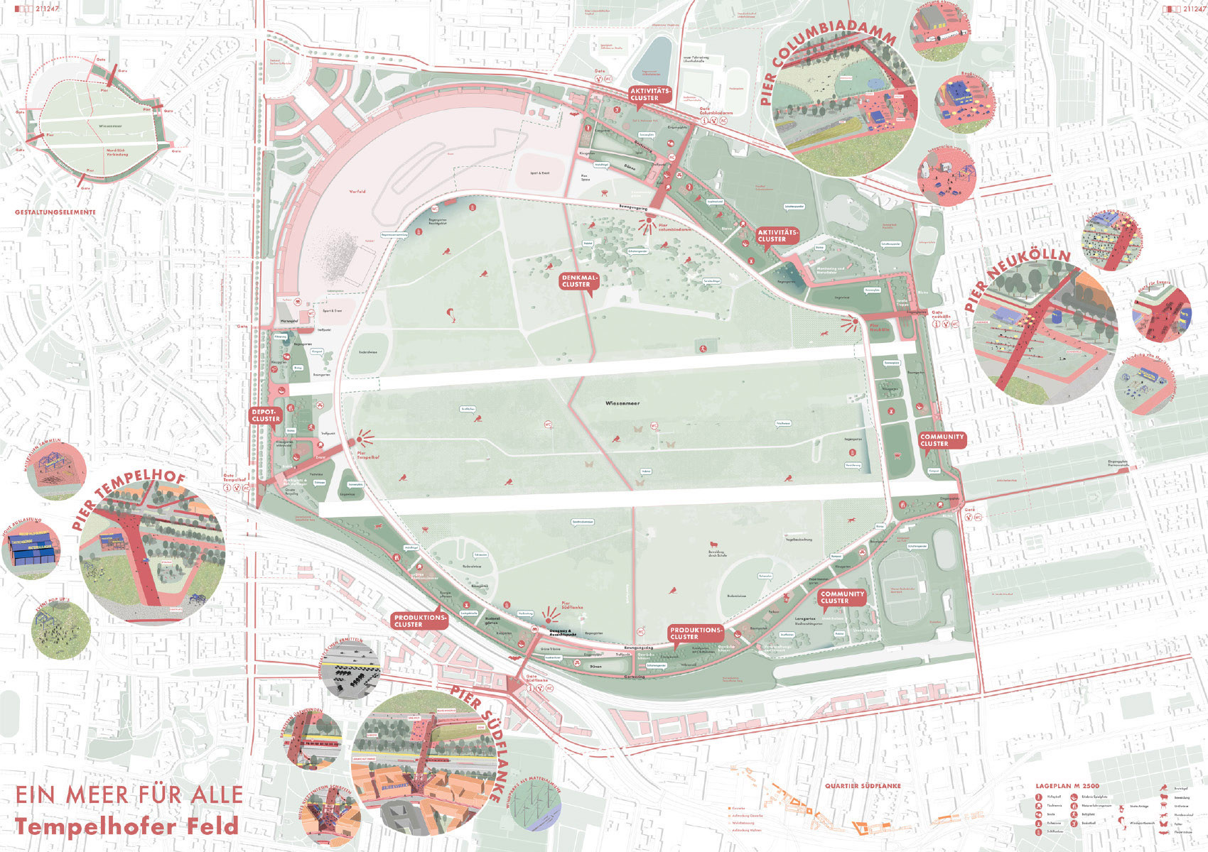 Tempelhofer Feld is Berlin’s green lung, a symbol of freedom, democratic participation, and a unique space of urban openness. In the face of climate change and a growing population, we do not want to develop this valuable open space but instead transform it sustainably for the future. Our vision, “A Sea for Everyone,” combines ecological resilience, social integration, and sustainable urban development into a holistic concept that preserves the site’s historical significance while opening up new perspectives.